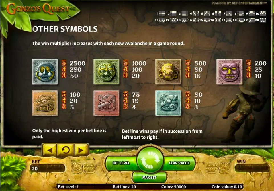 Gonzo’s Quest предлагает уникальную игровую механику – функцию Avalanche, в которой символы не вращаются на барабанах, а падают на место. Выигрышные символы взрываются и освобождают место для новых, что может привести к нескольким выигрышам подряд. Каждый последующий выигрыш увеличивает множитель, повышая потенциальный выигрыш.
