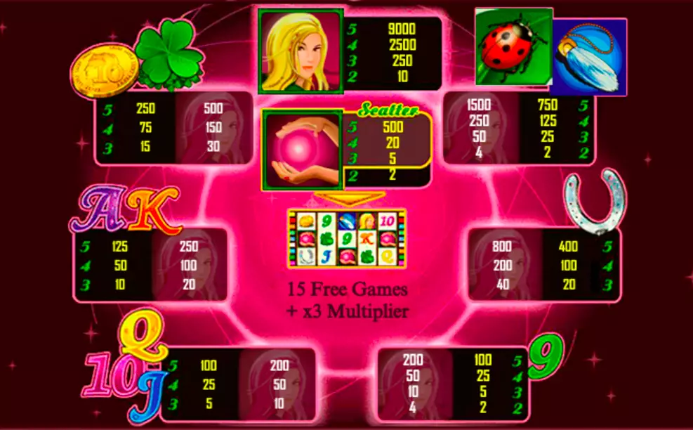- Free Spins Galore: Зафиксируйте три скаттера в виде хрустального шара и узрите волшебство – 15 бесплатных вращений с щедрым множителем x3!